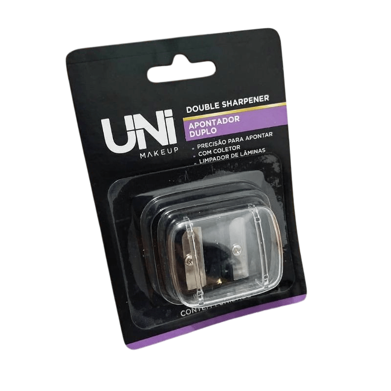O Apontador Duplo Uni é ideal para manter seus lápis de maquiagem sempre bem apontados e prontos para o uso. Com dois tamanhos de encaixe, ele é compatível com lápis finos e grossos, oferecendo versatilidade e eficiência no dia a dia.