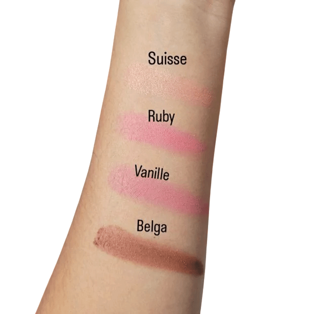 Com um pincel próprio para blush, aplique o produto nas maçãs do rosto em movimentos circulares, esfumando suavemente até alcançar o efeito desejado.