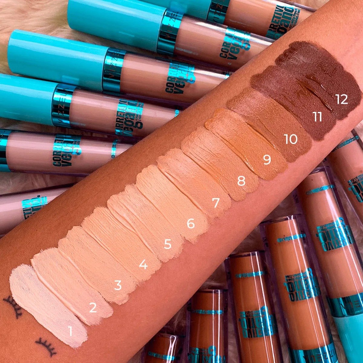 Corretivo líquido de alta cobertura e efeito matte, desenvolvido para disfarçar imperfeições sem craquelar, proporcionando uma pele aveludada com acabamento velvet HD.