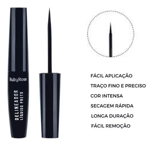 O Delineador Líquido Preto da Ruby Rose possui uma ponta fina, ideal para traços delicados ou mais ousados, conforme a sua preferência!
