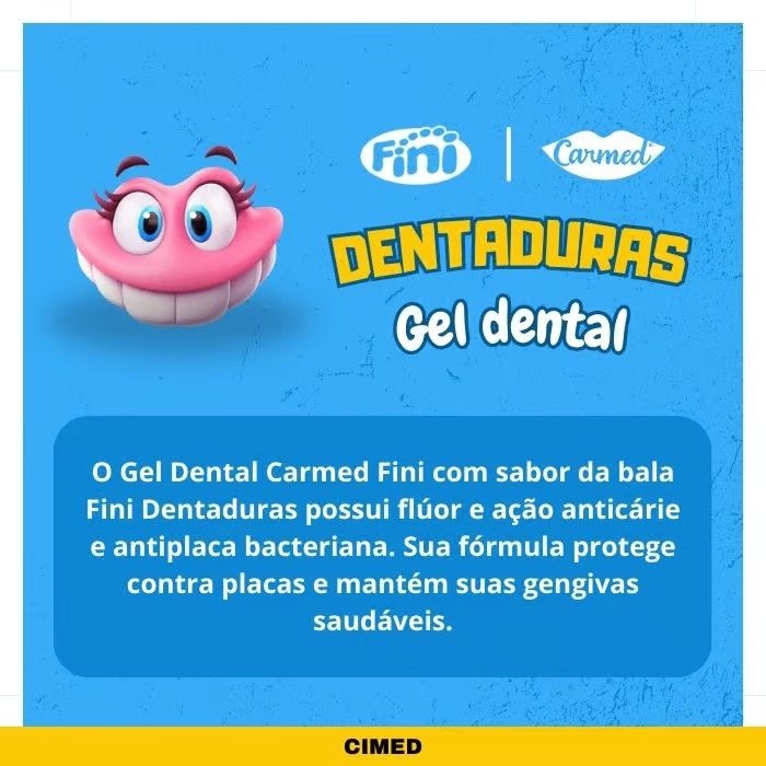 O Gel Dental Carmed Fini possui fórmula suave desenvolvido para ajudar a combater a placa bacteriana, promovendo dentes mais saudáveis e um sorriso mais bonito.