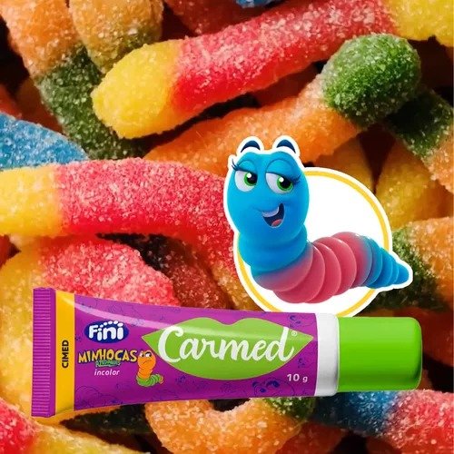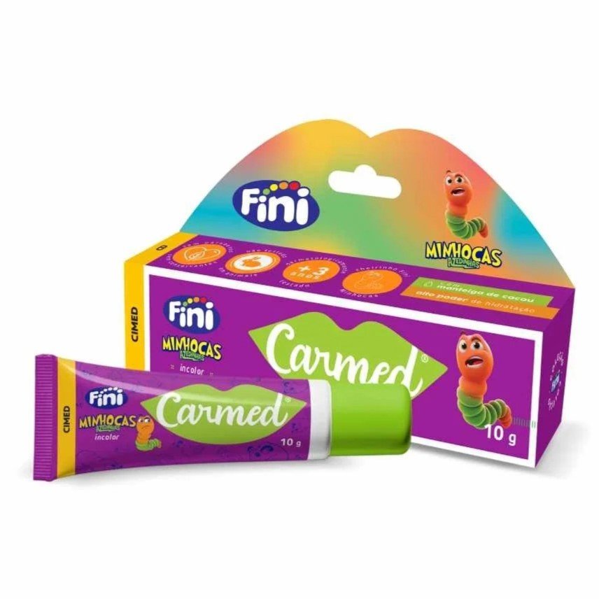 Carmed Fini Minhocas Azedinhas 10g é um hidratante labial com grande capacidade de hidratação e previne rachaduras, mantendo os lábios suaves e saudáveis.