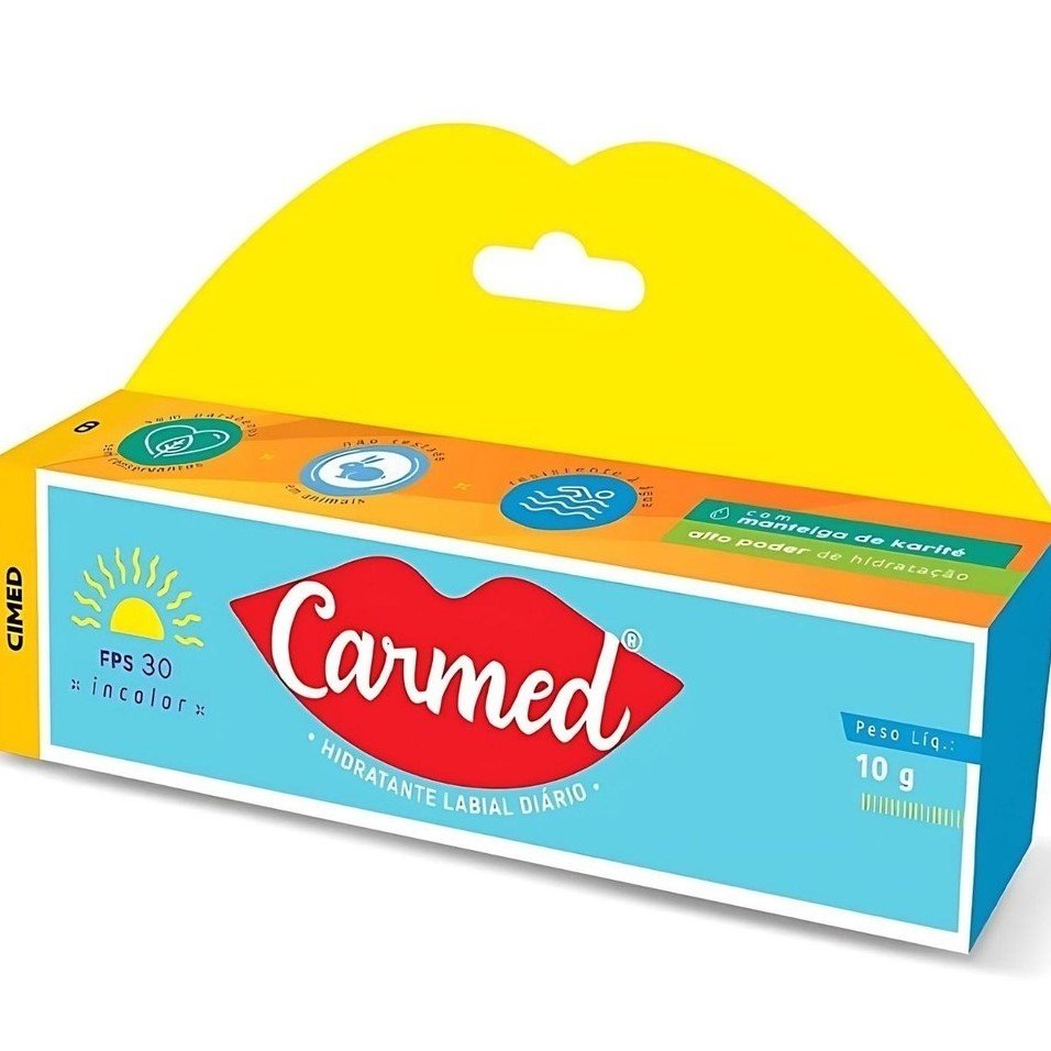 Carmed Hidratante Labial Diário FPS 30 proporciona proteção UVA e UVB, hidratação intensa e resistência a água.