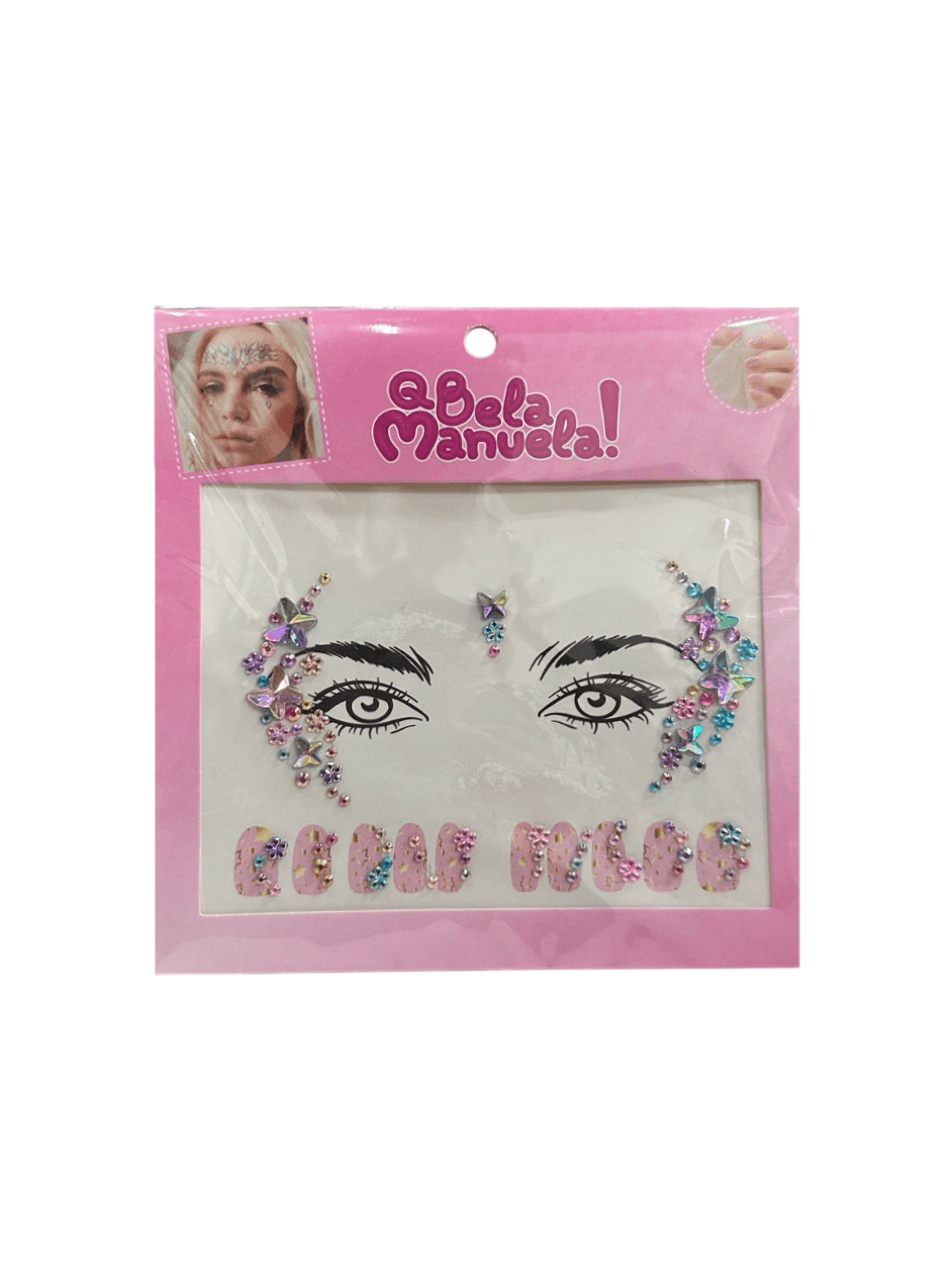 • Adesivos de pedraria para colar no rosto, adicionando brilho e sofisticação ao seu look.