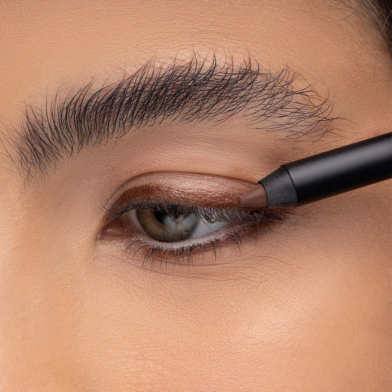• Deslize o lápis sobre a linha d'água dos olhos ou sobre a raiz dos cílios e a seguir sele com uma sombra do mesmo tom do lápis para aumentar a durabilidade.