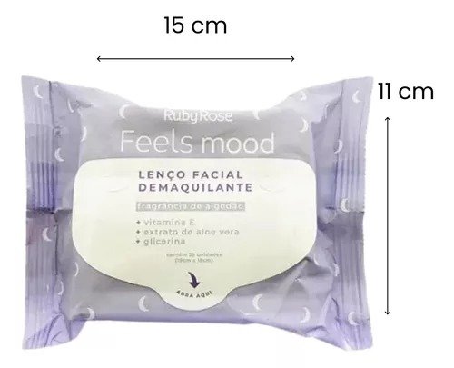 Lenço Facial Removedor de Maquiagem da linha Feels Mood, contém 25 unidades(19cm x18cm),com uma delicada essência de algodão, oferece uma maneira prática e eficaz de retirar sua maquiagem em poucos segundos.