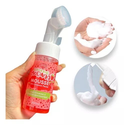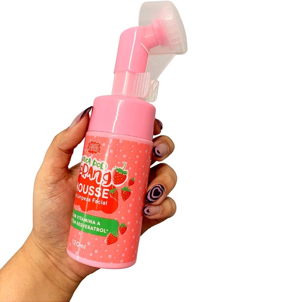 Pele limpa e refrescante com o Mousse de Limpeza Facial Super Poderes Louca por Morango!