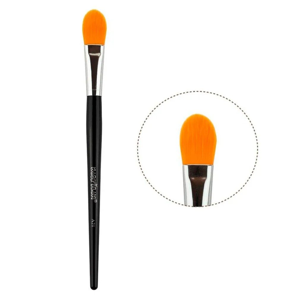 Seu formato em "língua de gato", com cerdas firmes e densas, permite uma aplicação impecável de produtos cremosos e líquidos, como bases, corretivos e primers.
