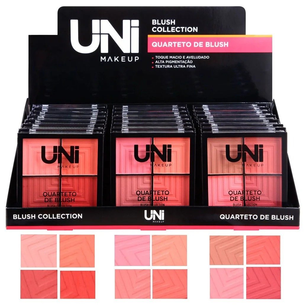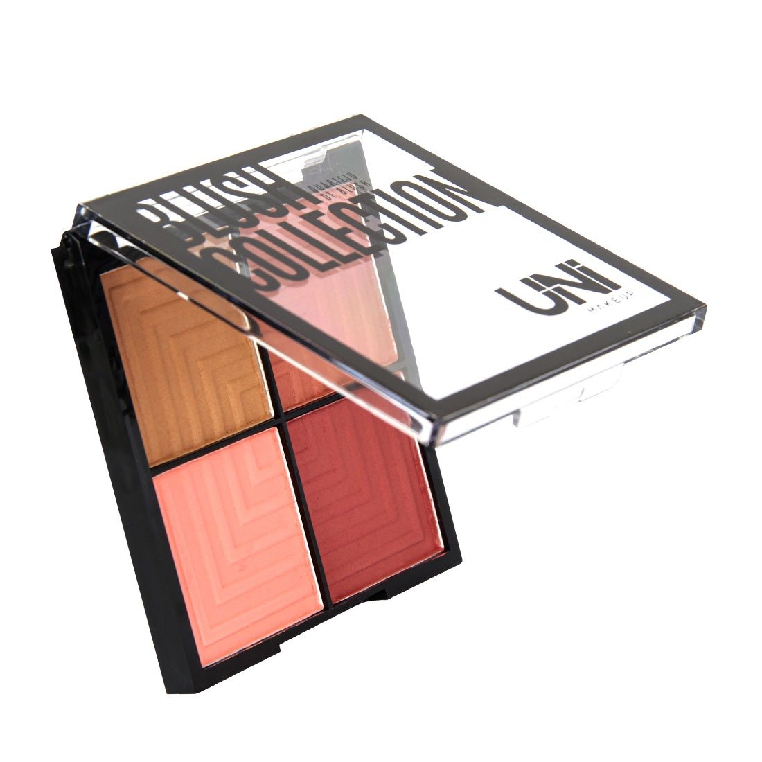 O Quarteto de Blush Uni Collection traz quatro tonalidades incríveis em um só estojo, que podem ser usadas individualmente ou combinadas entre si para criar o tom ideal para o seu visual. Com textura fina e aveludada, o produto proporciona um acabamento natural e uniforme, ideal para realçar as maçãs do rosto com cor e frescor.