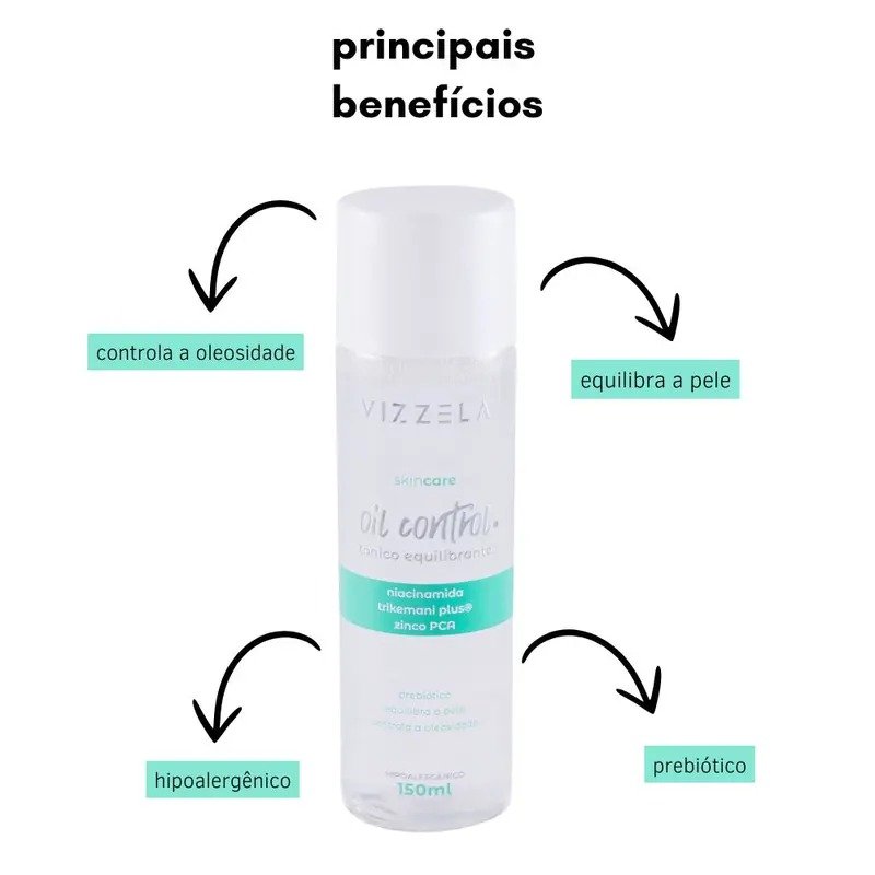 O Tônico Equilibrante Oil Control Vizzela foi desenvolvido para controlar a oleosidade da pele sem ressecar, promovendo equilíbrio e hidratação. Sua fórmula combina niacinamida e zinco PCA, ativos reconhecidos por sua eficácia no controle do sebo e na melhora da textura da pele. Conta ainda com Trikemani Plus®, uma tecnologia prebiótica que ajuda a equilibrar a flora cutânea, proporcionando uma pele saudável e protegida.