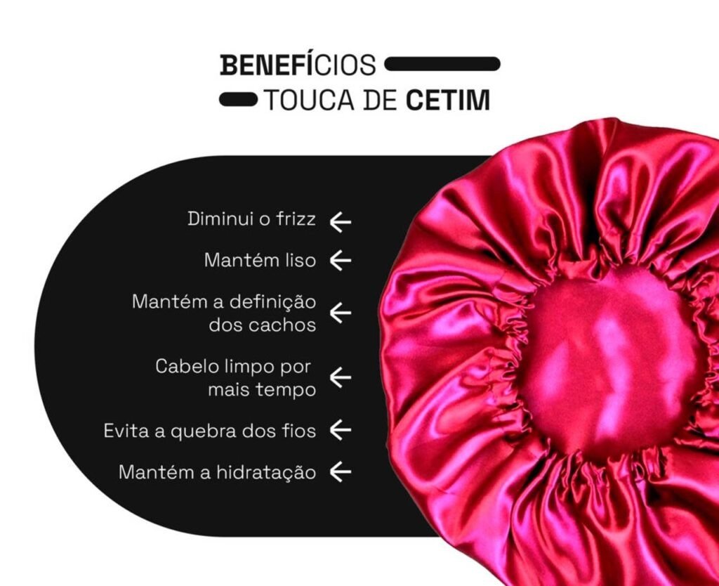 A touca de cetim é um acessório altamente funcional e benéfico para a proteção dos cabelos, especialmente durante a noite pois contribui pode para que os cabelos fiquem mais disciplinados e hidratados ao acordar.